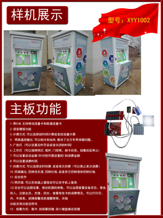 2. 洗衣液自动售卖机,无需人员值守, 可24小时全天候营业,实现随时随地销售。