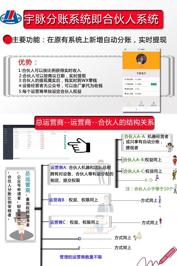 特点一:用户绑定自己公众号、个性定制功能、会员有效期设置、会员等级打折、设备管理、促销管理、商户通管理、授权管理、中英系统管理、分享赚钱、GPRS定位