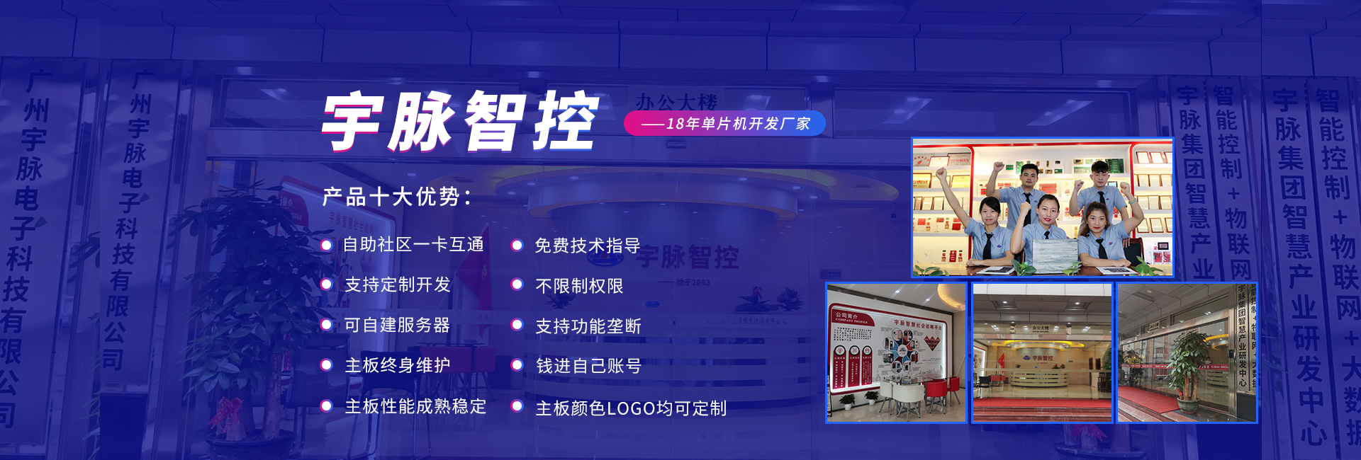 公司前身是2003年成立的宇脉电子石牌经营部,在广州新赛格电子城拥有两个实体店,专注于单片机开发、电子产品定制开发。2014年正式更名为米兰体育平台app官网-米兰体育(中国) ,专注打造无人值守自助设备控制系统及后台管理系统方案定制的国家高新技术企业。并成为集研发、生产、销售和服务于一体的领军企业。